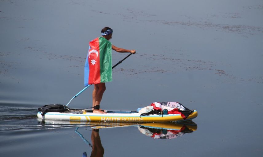 Konya'nın Beyşehir ilçesinde sörfçüler, Beyşehir Gölü'nü SUP (kürek sörfü) ile 58 kilometre yol katederek bir uçtan uca geçti. Beyşehir Kültür ve Turizm Derneği tarafından 1 Eylül Dünya Barış Günü kapsamında düzenlenen etkinlikte göl kıyısında buluşan sporcular Nüşabe Deniz Paşazade ile Neslihan Gürcan, "İki devlet bir can; Türkiye Azerbaycan" sloganıyla Beyşehir Gölü'nde yaşanan kuraklığa dikkati çekmek amacıyla kürek tahtası üzerinde sörf yaptı.