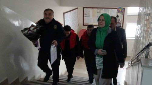 Sorgun Belediyesi İtfaiye ekipleri, mektup yazan 12. sınıf öğrencisi Belinay Çakıcı’yı Şehit Nusret Atmaca Kız Anadolu İmam Hatip Lisesi’nde çiçek ve hediye ile ziyaret etti.