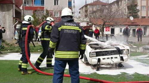 Sorgun İtfaiyesi 10 günlük eğitim programına araç yangını tatbikatıyla başladı