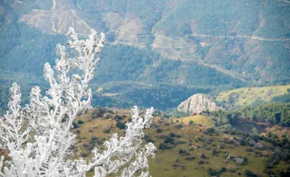 Manisa'nın simgelerinden Spil Dağı Milli Parkı, kar yağışı olmamasına rağmen kırağı ve buzlanma nedeniyle beyaza büründü. Mevsimin en soğuk günlerinin yaşandığı alanda özellikle yüksek kesimlerde oluşan yoğun buz tabakası, buzul manzaralarını andırdı.