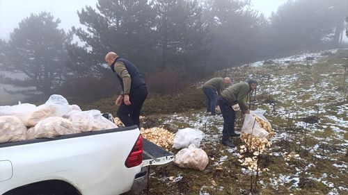 Kış şartları nedeniyle yiyecek bulmakta zorlanan yaban hayvanları için Spil Dağı'na yem bırakıldı.