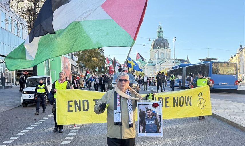 İsrail'in Gazze Şeridi'ni işgali sırasında silahlandırdığı çetelerce öldürülen Filistinli gazeteci Salih el-Caferavi İsveç'in başkenti Stockholm'de anıldı, katılımcılar uygulanan soykırımı da protesto etti. Eylemciler, çok sayıda sivil toplum kuruluşunun çağrısıyla Odenplan Meydanı'nda bir araya geldi.
