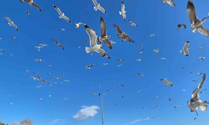 Denizdeki hareketlilik arasında çok sayıda martının dalgalar arasında balık yakalamaya çalışması, sahilde dikkat çeken gözlemler arasında yer aldı.