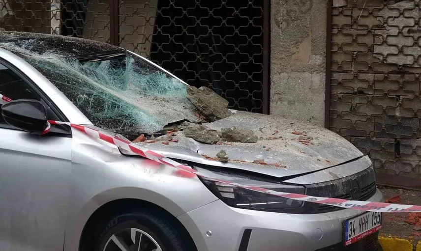 Sultanbeyli’de balkon çöktü: Park halindeki 2 araçta maddi hasar