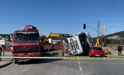 Sultanbeyli'de hafriyat kamyonu sürücü kursu otomobilinin üzerine devrildi. İhbar üzerine olay yerine itfaiye ve polis ekipleri sevk edildi.