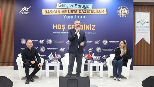 Başkan Abdurrahman Dursun, Fulya Öztürk ve Türker Akıncı, "Gençler Soruyor, Başkan ve Usta Gazeteciler Yanıtlıyor" programında gençlerin projeler, spor ve medya konusundaki sorularını yanıtladı.