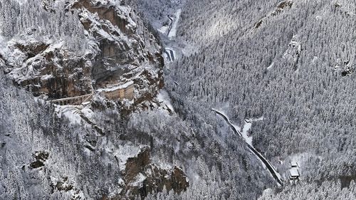Sümela Manastırı, Trabzon'un Maçka ilçesinde kar yağışının ardından muhteşem görüntülere büründü.