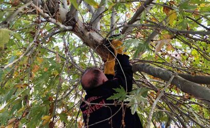 KEDİYİ AĞAÇTAN İNDİREN İTFAİYE ERİ VE KEDİ