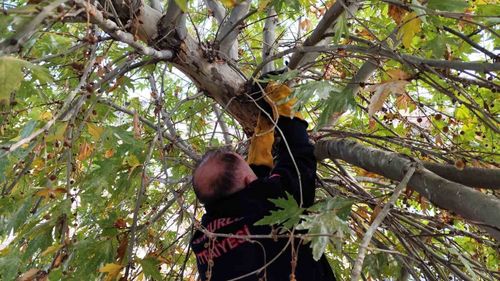 Sungurlu'da Zübeyde Hanım Parkı'nda ağaca tırmanıp inemeyen kedi, vatandaşların ihbarı üzerine Sungurlu Belediyesi itfaiye ekibi tarafından kurtarıldı.