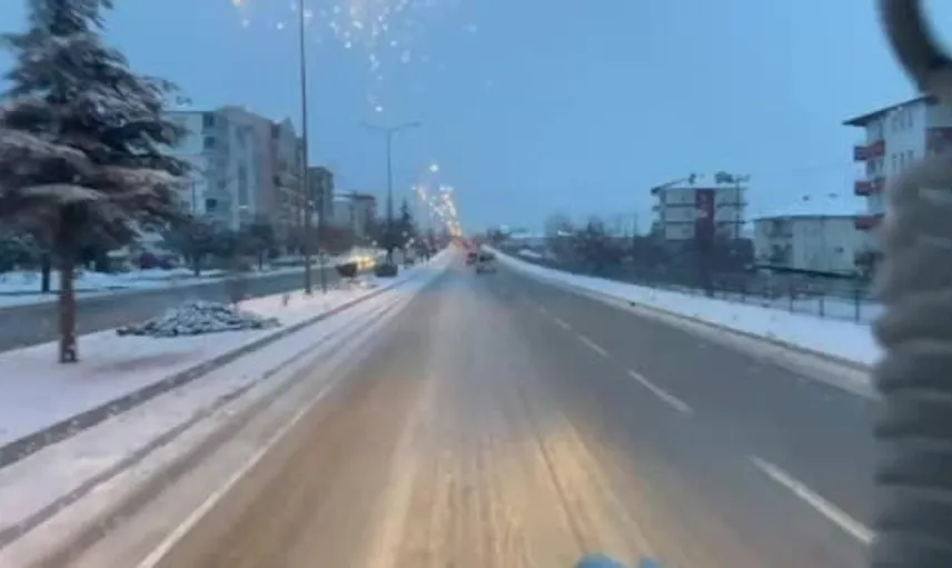 Kar yağışı nedeniyle manevra alanının kısıtlı olduğu ve itfaiye aracının genişliği sebebiyle orta şeritten ilerleyemediği belirtilirken, bir süre sonra sağ şeridin boşalmasıyla itfaiye ekibi hafif ticari aracı geçebildi.