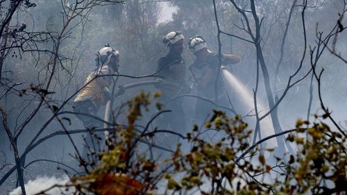 Suriye'nin Bayırbucak bölgesinde çıkan orman yangınına müdahale sürüyor, ekipler zorlu koşullar altında çalışıyor.