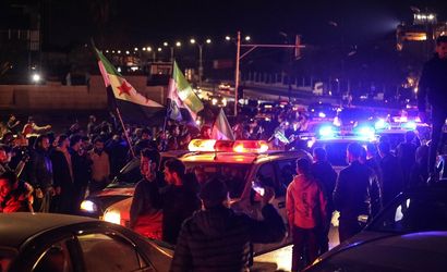 Suriye'nin başkenti Şam'da, Emevi Meydanı'nda toplanan binlerce kişi, Lazkiye'de güvenlik güçlerine düzenlenen saldırıyı protesto etti.