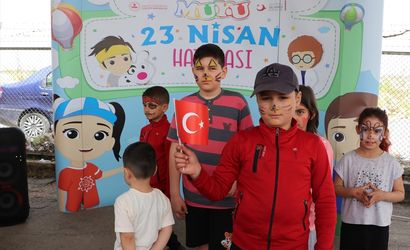 Suriye’ye dönmek için Kilis’teki Öncüpınar Gümrük Kapısı’na gelen Suriyeli ailelerin çocukları, burada düzenlenen 23 Nisan Ulusal Egemenlik ve Çocuk Bayramı etkinliğine katıldı.
