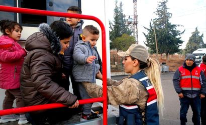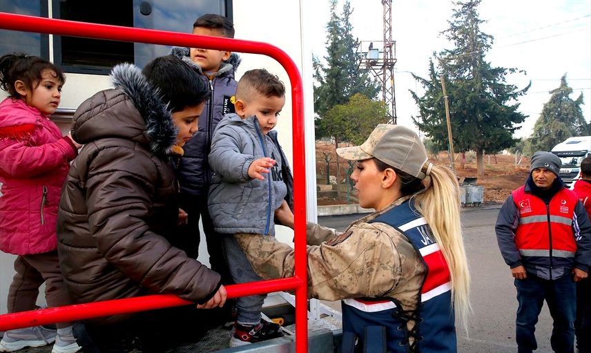 İç savaş sırasında Türkiye'ye sığınan Suriyeliler, 61 yıllık Baas rejiminin devrilmesi sonrasında ülkelerine dönmek için Hatay'daki 3 sınır kapısını kullanıyor. Suriyeliler, Hatay'daki Cilvegözü Sınır Kapısı'ndan geçerek ülkelerine dönüyor. Sınır kapısında tedbir alan jandarma ekipleri, aileleriyle ülkelerine dönen Suriyeli çocuklara yakın ilgi gösteriyor.