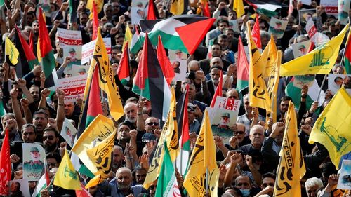 Beyrut'ta öldürülen İranlı General Nilfuruşan için Tahran'da düzenlenen cenaze törenine üst düzey yetkililer katıldı.