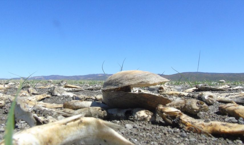 Kuraklığın etkisinin açıkça görüldüğü bölgede, kuruyan toprakların üzerinde ölen balıklar ve midyeler göze çarpıyor. Bu durum, hem ekosistem hem de yöre halkının geçim kaynakları açısından olumsuz işaretler taşıyor.