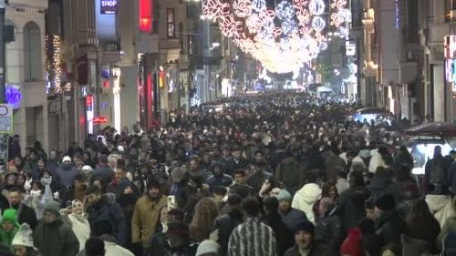 Taksim Meydanı ve İstiklal Caddesi'ndeki yılbaşı coşkusu, yoğun güvenlik önlemleri ve polis kontrol noktaları eşliğinde havadan görüntülendi.