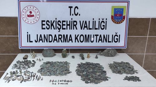 Eskişehir’deki Mahmudiye ilçesinde elindeki 1886 parça tarihi eseri satmaya satmaya çalışan zanlılar gözaltına alındı.