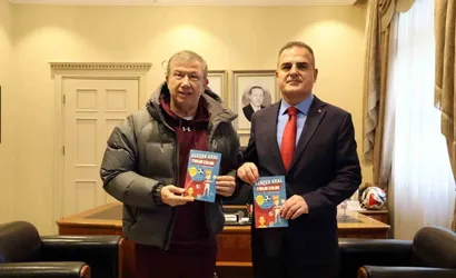 FUTBOLUN EFSANE İSMİ VALİ AKBIYIK’A ‘GERÇEK KRAL TANJU ÇOLAK’ KİTABINI HEDİYE ETTİ