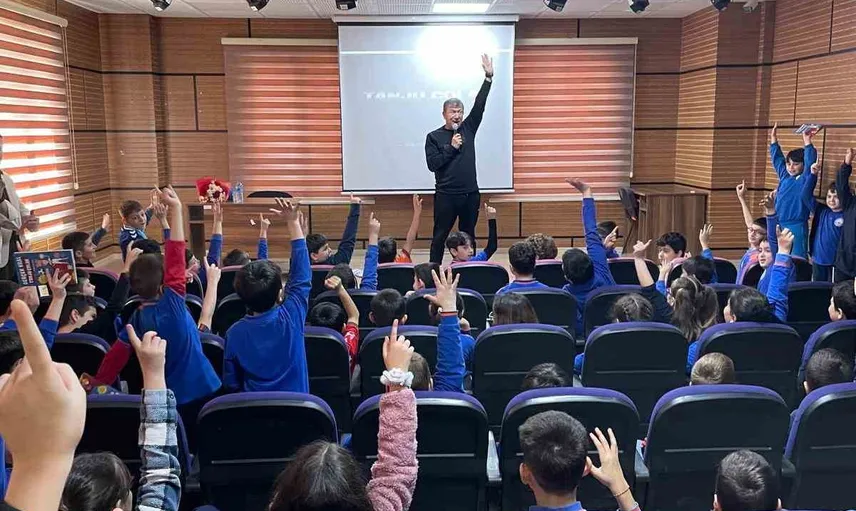 TÜRK FUTBOLUNUN UNUTULMAZ GOLCÜLERİNDEN TANJU ÇOLAK İLKOKUL ÖĞRENCİLERİNE YÖNELİK YAPTIĞI SÖYLEŞİDE, "DİSİPLİNLİ ÇALIŞMA VE MÜCADELE RUHU, HER ALANDA OLDUĞU GİBİ SPOR BRANŞLARINDA DA SİZİ BAŞARIYA TAŞIYACAKTIR" DEDİ.