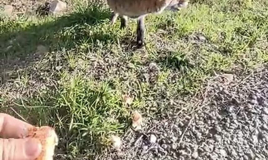 Çanakkale Savaşlarının yaşandığı Tarihi Gelibolu Yarımadasını gezen Ekrem Nizamoğlu, bölgede yaşayan ve insanlara alışmış bir tilkiyi eliyle besledi. Nizamoğlu, o anları cep telefonu kamerasıyla kaydetti ve ziyaretçiler arasında paylaştı.