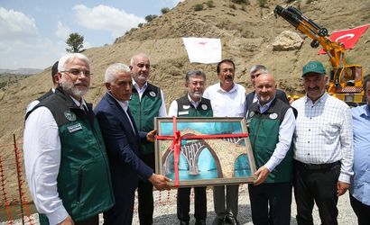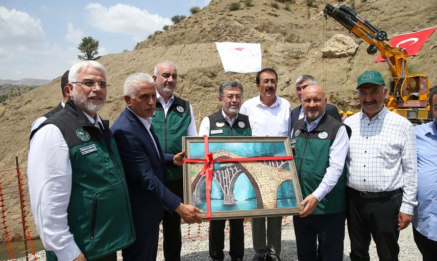 Tarım ve Orman Bakanı İbrahim Yumaklı (sağda), Adıyaman ziyaretleri kapsamında Gölbaşı ilçesinde inşa edilen Çetintepe Barajı'nın su tutmaya başlaması dolayısıyla düzenlenen törene katıldı.