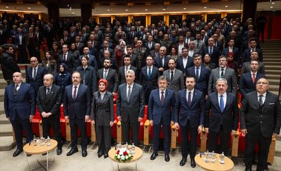 Aile ve Sosyal Hizmetler Bakanı Mahinur Özdemir Göktaş (sol 4), Ticaret Bakanı Ömer Bolat (sol 5) ile Tarım ve Orman Bakanı İbrahim Yumaklı (sol 6), Türkiye Odalar ve Borsalar Birliği (TOBB) Konferans Salonu'nda düzenlenen "2025 Uluslararası Kooperatifler Yılı Açılış Töreni"ne katıldı.
