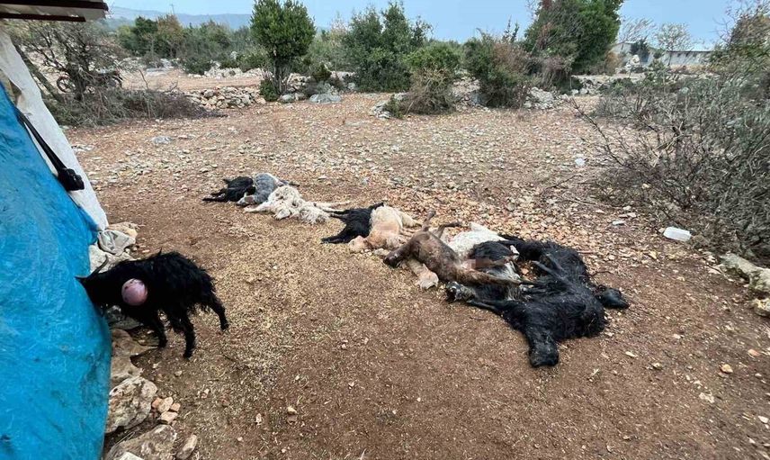 Mersin'in Tarsus ilçesi Beylice Mahallesindeki bir ağıla giren yabani hayvan, 12 küçükbaş hayvanın boğazlarından ısırılarak telef olmasına neden oldu.