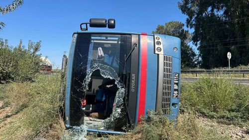 Mersin'in Tarsus ilçesinde hükümlüleri taşıyan midibüsün devrilmesi sonucu 8 jandarma ve 5 hükümlü olmak üzere 13 kişi yaralandı; yaralıların durumu iyi.