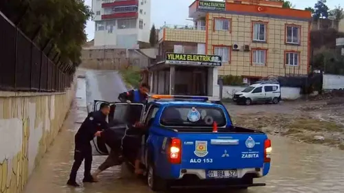 Tarsus'ta sel uyarıları sırasında zabıta ekipleri mağdur vatandaşa güvenli dönüş sağladı