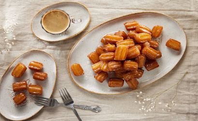 - Geniş bir tencereye sıvı yağ koyalım. Sıkma torbası yardımıyla hamuru sıkıp makasla keserek soğuk yağa atalım. Hamur bitene kadar işlemi tekrarlayıp, ardından tencerenin altını açıp yüksek ateşte hamurların yağın üstüne çıkmasını bekleyelim.