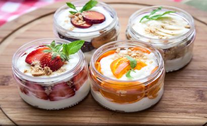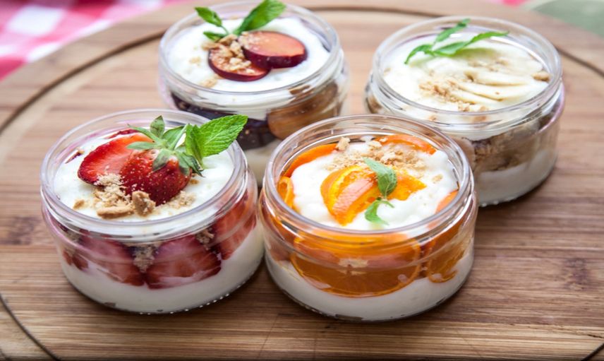 - Daha sonra cuplara önce bisküvi tozu serpip kenarlarına meyve yerleştirin, ardından üzerine hazırladığınız magnolia karışımını ekleyin.