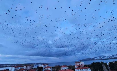 BİTLİS (İHA) — Bitlis’in Tatvan ilçesinde akşam saatlerine doğru gökyüzünde beliren binlerce sığırcık, izleyenlere görsel bir şölen sundu.