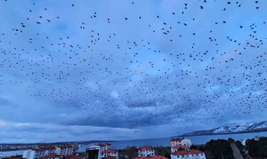 Tatvan'da binlerce sığırcığın senkronize uçuşu gökyüzünde görsel şölen oluşturdu