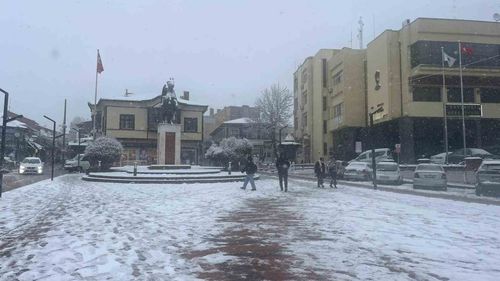 Tavşanlı'da ilçe merkezi ve yüksek kesimler karla kaplandı