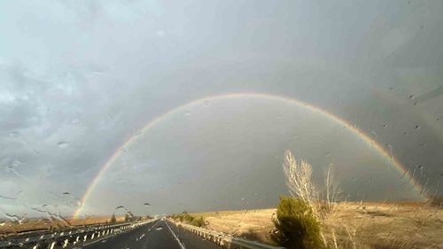 Kütahya'nın Tavşanlı ilçesinde sağanak sonrası gökyüzünde beliren gökkuşağı, vatandaşlar tarafından cep telefonlarıyla kaydedildi ve ilçenin birçok noktasından net görüldü.