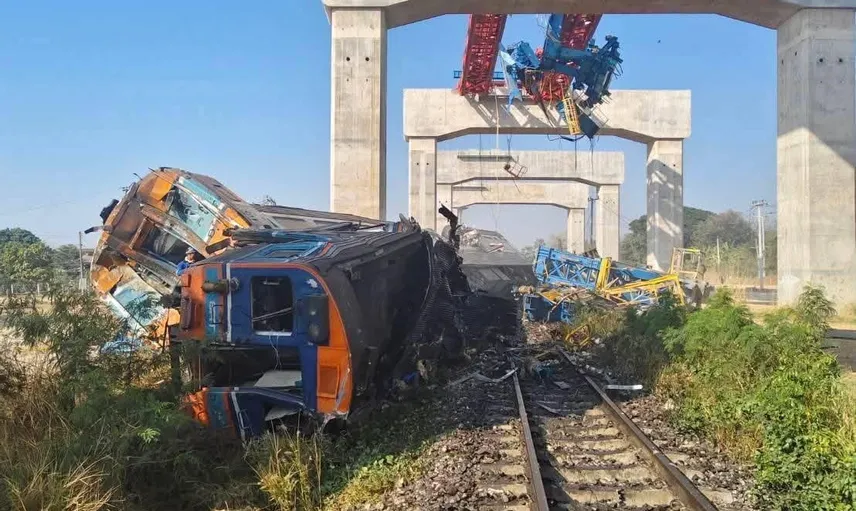 TAYLAND'IN NAKHON RATCHASİMA EYALETİNDE 190 YOLCULU TRENİN ÜZERİNE TONLARCA AĞIRLIKTAKİ VİNCİN DEVRİLMESİ SONUCU 22 KİŞİ HAYATINI KAYBETTİ, 55 KİŞİ YARALANDI.