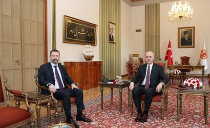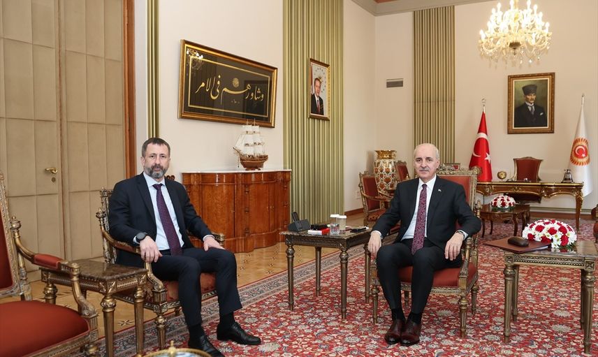 TBMM Başkanı Numan Kurtulmuş (sağda), Çekya'nın Ankara Büyükelçisi Petr Stepanek'i (solda) kabul etti.