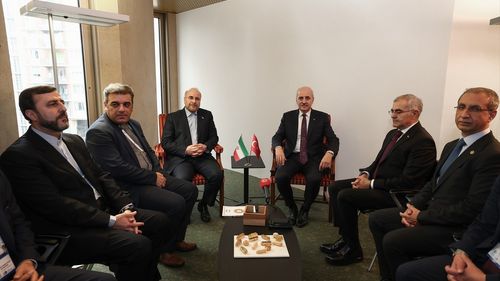 TBMM Başkanı Kurtulmuş, İran Meclis Başkanı Galibaf ile Görüştü