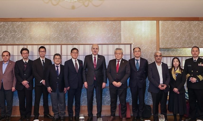 TBMM Başkanı Numan Kurtulmuş, ziyaret kapsamında bulunduğu Japonya'nın başkenti Tokyo'da, 6 Şubat 2023'te Kahramanmaraş merkezli depremlerin ardından bölgeye gelen Japon afet yardım ekibi ile bir araya geldi.