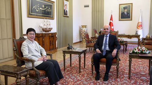 TBMM Başkanı Numan Kurtulmuş, Singapur'un Ankara Büyükelçisi Li Peng Kok'u makamında kabul etti.