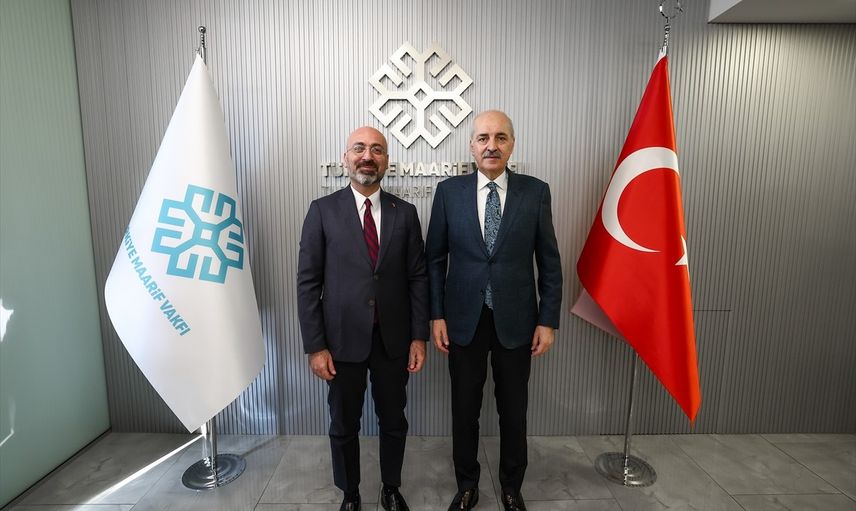 TBMM Başkanı Numan Kurtulmuş (sağda), Türkiye Maarif Vakfının Genel Merkezi'nde düzenlenen "Türkiye Maarif Vakfı 15. Ülke Temsilcileri İstişare Toplantısı"na katıldı. Toplantıda, Türkiye Maarif Vakfı Genel Başkanı Mahmut Özdil (solda) de yer aldı.