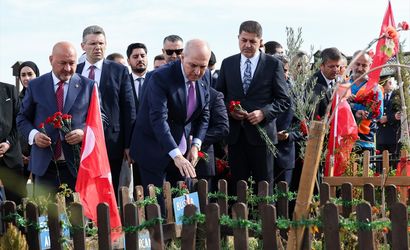 Kente çeşitli programlara katılmak üzere gelen Kurtulmuş, mezarlarda karanfil bıraktı. Okunan Kur'an-ı Kerim'e eşlik eden Kurtulmuş, yapılan duaya katıldı ve şehitler için saygı duruşunda bulundu.