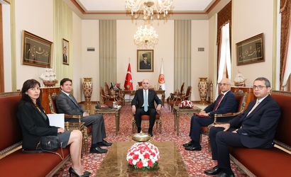 TBMM Başkanı Numan Kurtulmuş (ortada), Bulgaristan'ın Ankara Büyükelçisi Anguel Tcholakov'u (sol 2) kabul etti.