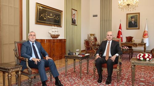 TBMM Başkanı Numan Kurtulmuş, Çalışma ve Sosyal Güvenlik Bakanı Vedat Işıkhan'ı kabul etti.
