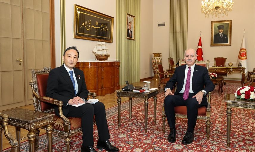 TBMM Başkanı Numan Kurtulmuş, Japonya'nın Ankara Büyükelçisi Katsumata Takahiko'yu Meclis'te kabul etti.