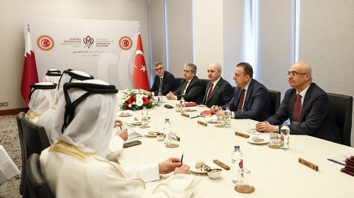 TBMM Başkanı Kurtulmuş, Filistin’i Destekleyen Parlamentolar Grubu Toplantısı kapsamında Katar Şura Meclisi Başkanı Ghanim ile bir araya geldi.