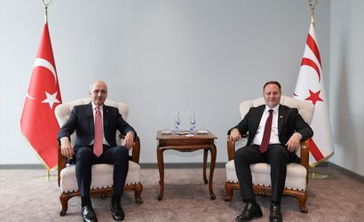 TBMM Başkanı Numan Kurtulmuş, Kuzey Kıbrıs Türk Cumhuriyeti (KKTC) Cumhuriyet Yerleşkesi Açılış Töreni ile TEKNOFEST KKTC Ödül Töreni'ne katılmak üzere Lefkoşa'ya geldi. Kurtulmuş’u, Ercan Havalimanı’nda, KKTC Cumhuriyet Meclisi Başkanı Ziya Öztürkler (sağda) karşıladı.