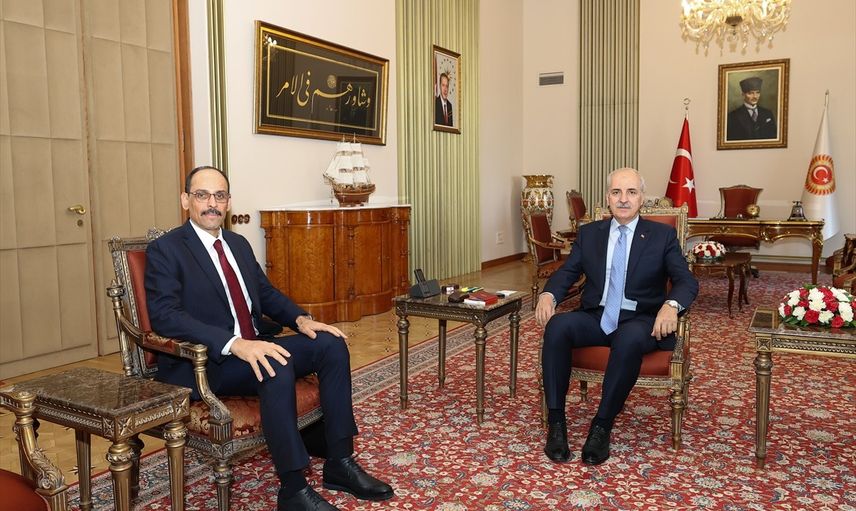 TBMM Başkanı Numan Kurtulmuş, Milli İstihbarat Teşkilatı (MİT) Başkanı İbrahim Kalın'ı kabul etti. Gerçekleştirilen kabul, TBMM'nin resmi sosyal medya hesabı üzerinden duyuruldu.