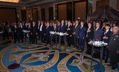 TBMM Başkanı Numan Kurtulmuş (fotoğrafta) Kazakistan Cumhuriyet Bayramı dolayısıyla Kazakistan’ın Ankara Büyükelçiliği tarafından bir otelde düzenlenen resepsiyonda konuşma yaptı.